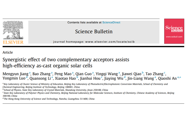 近期,北京理工大學(xué)化學(xué)與化工學(xué)院安橋石團(tuán)隊(duì)在《Science Bulletin》上發(fā)表題為“Synergistic effect of two complementary acceptors assi...